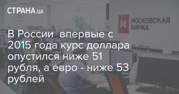 Сегодня курс доллара на Мосбирже опустился ниже 51 рубля впервые с мая 2015 года. Курс евро - ниже 53 рублей, также первый раз с апреля того же года.