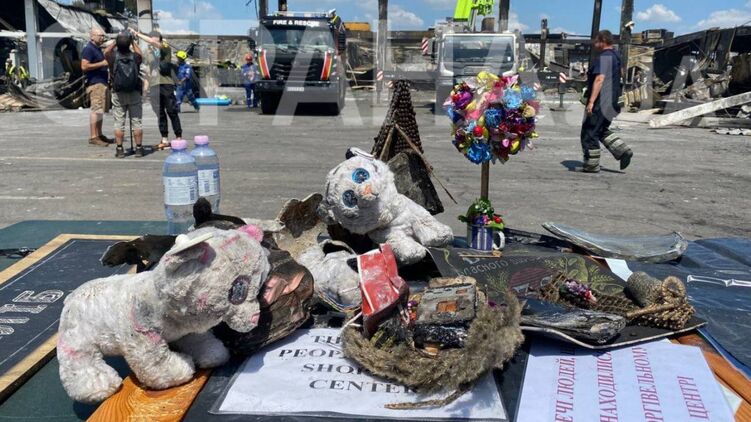 Мемориал у сгоревшего торгового центра Кременчуга. Фото "Страны"