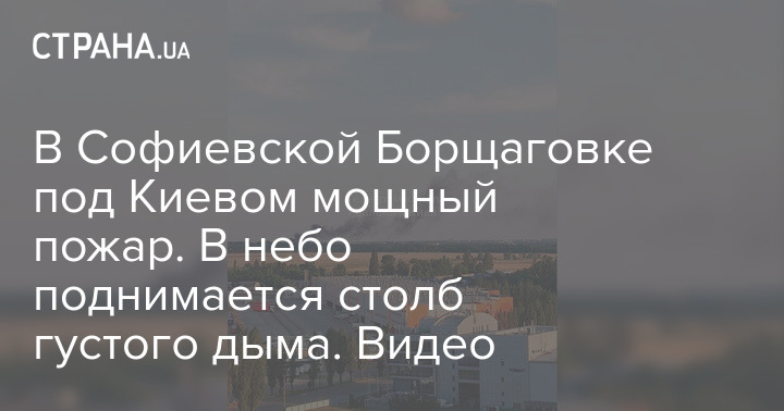 В Софиевской Борщаговке под Киевом мощный пожар. В небо поднимается столб густого дыма. Видео