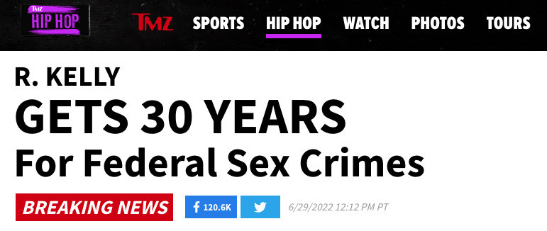 Американский рэп-исполнитель R. Kelly, известный по композиции I Believe I Can Fly, осужден в США на 30 лет лишения свободы за торговлю людьми с целью сексуальной эксплуатации.