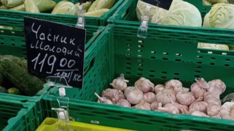 На киевском рынке "Столичный" максимальная планка по чесноку и вовсе 140 гривен за килограмм.