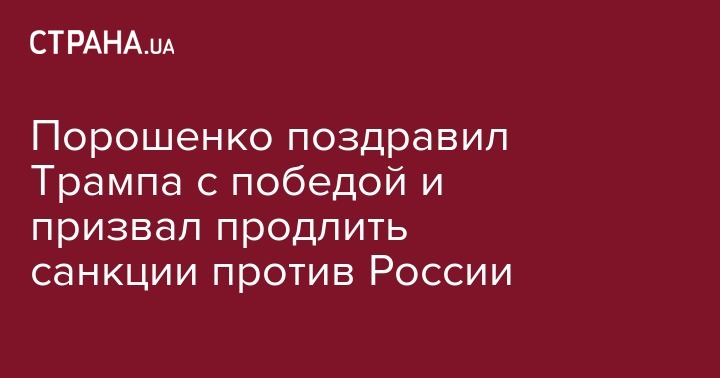 Петр Порошенко поздравил Дональда Трампа с победой на президентских выборах США. Такое сообщение размещено на сайте президента страны.