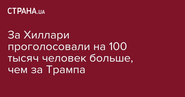 Кандидат от Демократической партии Хиллари Клинтон опередила своего соперника от републиканцев Дональда Трампа по количеству голосов избирателей. За Клинтон проголосовали на 100 000 человек больше. Об этом сообщает The New York Times.