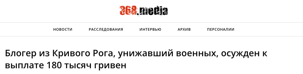 Суд оштрафовал почти на 180 тысяч грн блогера, который публично оскорблял украинских военных
