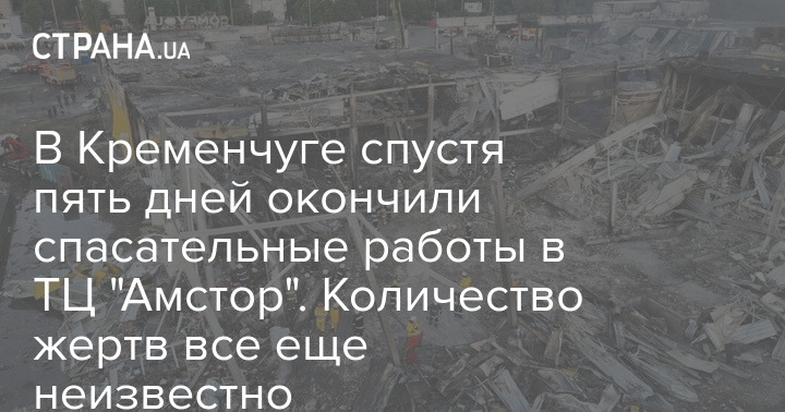 Поисково-спасательные работы на месте торгового центра "Амстор" в Кременчуге окончены.