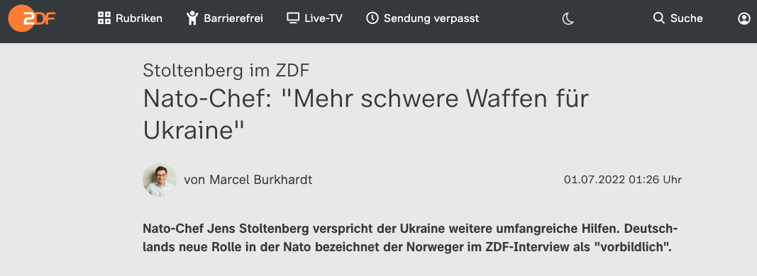 Ответ Столтенберга был таков: "Это хорошая идея – предоставить в распоряжение Украины тяжелое оружие. НАТО будет также помогать в переходе от старого вооружения советского времени к современному оружию НАТО".