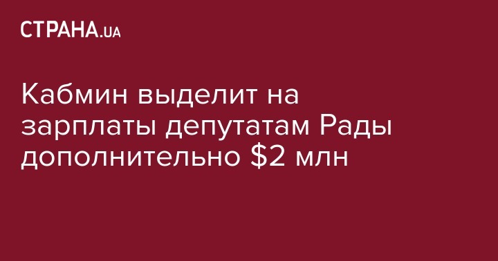 Из этой суммы 52,5 млн грн (в эквиваленте $2 млн) будет выделено на выплату заработной платы депутатам Рады. Кабмин также предлагает выделить на законотворческую деятельность парламента 611,2 млн грн (около $24 млн), из них почти половину на зарплату депутатам — 314,3 млн грн (около $12,2 млн).