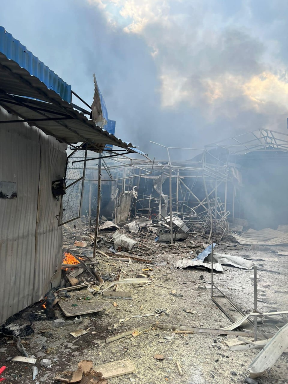 В Основянском попали по открытой территории, в Новобаварском ударом разрушили часть админздания.