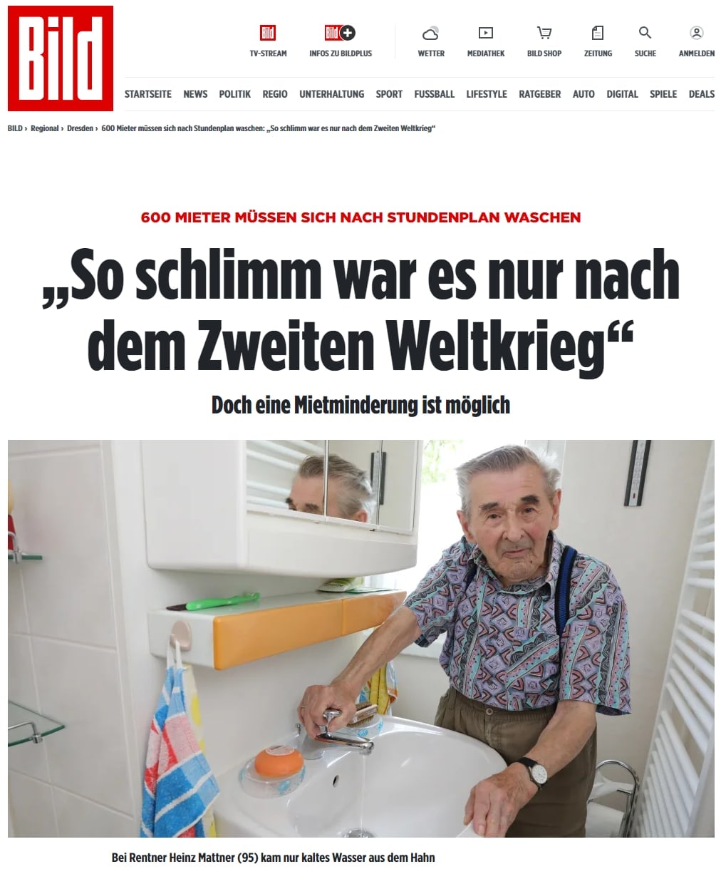 Немецкий Bild, описывая эту историю, вынес в заголовок фразу одного из пожилых жильцов - "так плохо было только после Второй мировой".