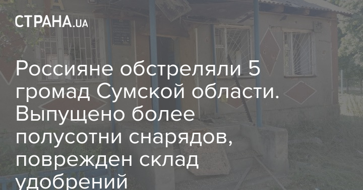 Россияне обстреляли 5 громад Сумской области. Выпущено более полусотни снарядов, поврежден склад удобрений
