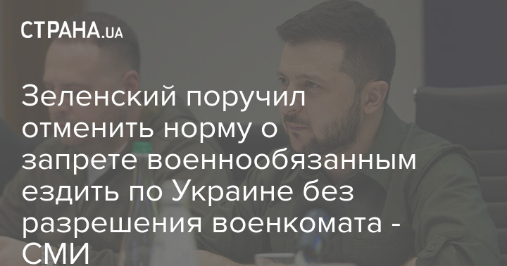 Зеленский поручил отменить норму о запрете военнообязанным ездить по Украине без разрешения военкомата - СМИ