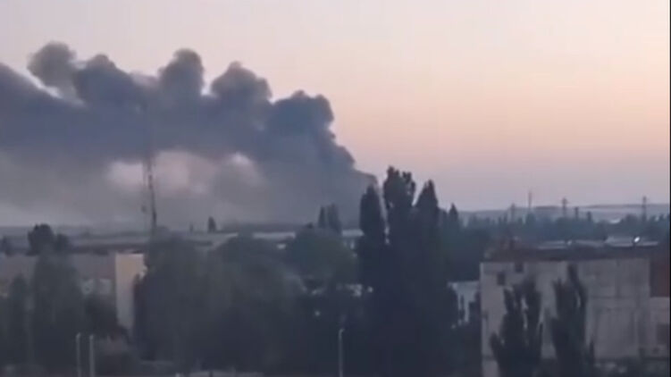 Видео, на котором над городом на несколько километров поднимается густой черный дым, публикует спикер Одесской Областной военной администрации Сергей Братчук. По его данным, взорвана российская система ПВО и боеприпасы.