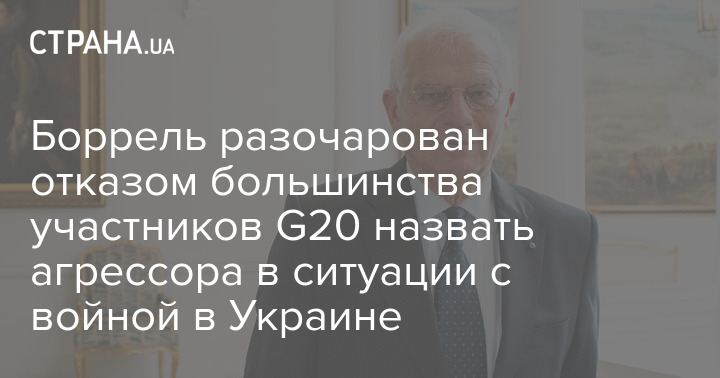Представитель Евросоюза Жозепп Боррель разочарован тем, что большинство участников G20 отказались "назвать агрессора" в ситуации вокруг Украины.