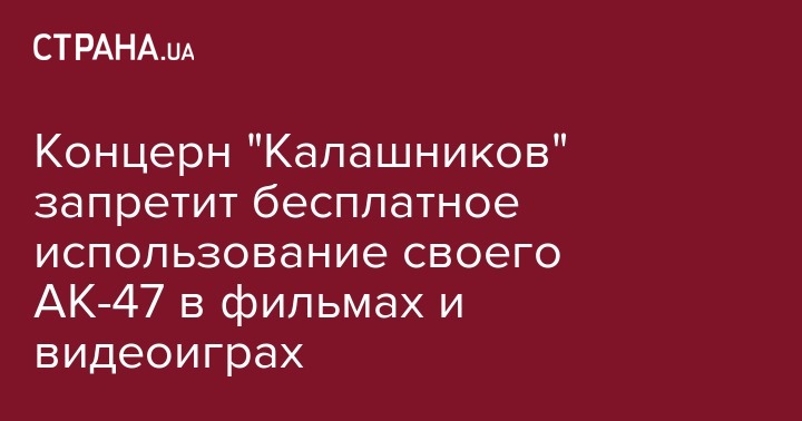 Российский концерн "Калашников" будет брать плату за использование автоматов своего бренда (АК-47 и АК-74) в видеоиграх, мультфильмах, фильмах, содержащих изображение данного оружия. Об этом пишет газета "Известия".