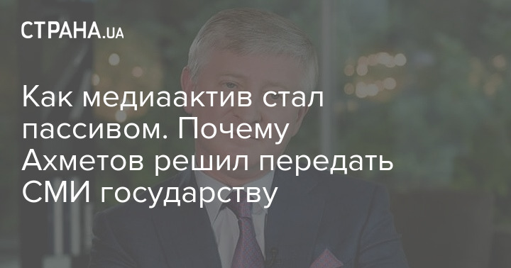 "Страна" разбиралась, почему Ринат Ахметов решил отдать свой медиа-бизнес государству.