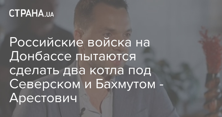 Советник главы Офиса президента Украины Алексей Арестович в эфире у Марка Фейгина заявил, что россияне на Донбассе пытаются создать два основных "котла" - в районах Северска и Бахмута.