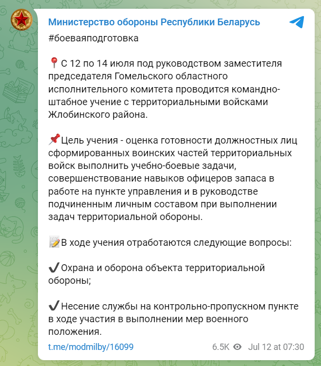 В Беларуси сегодня начинаются новые командно-штабные военные учения у границы с Украиной. В них будут принимать участие территориальные войска Жлобинского района Гомельской области.