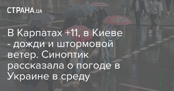 В Карпатах +11, в Киеве - дожди и штормовой ветер. Синоптик рассказала о погоде в Украине в среду