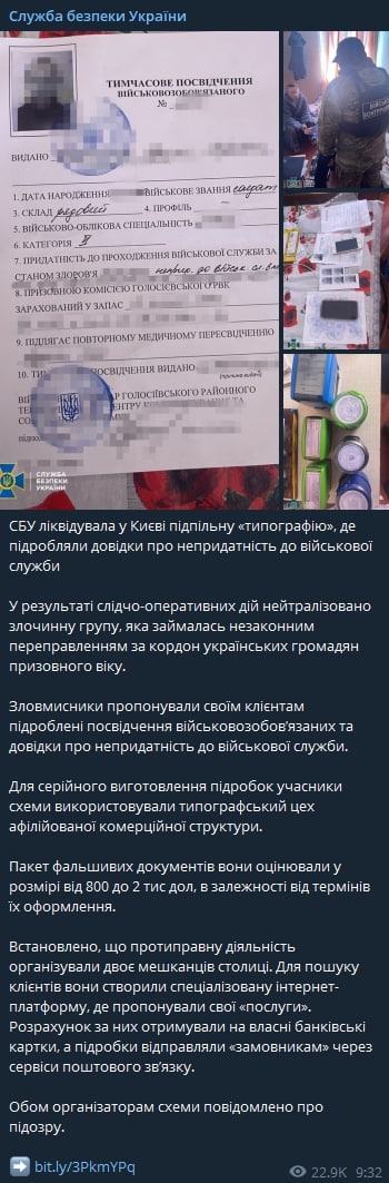 В Киеве раскрыли работу подпольной типография, которая печатала справки о непригодности к воинской службе.