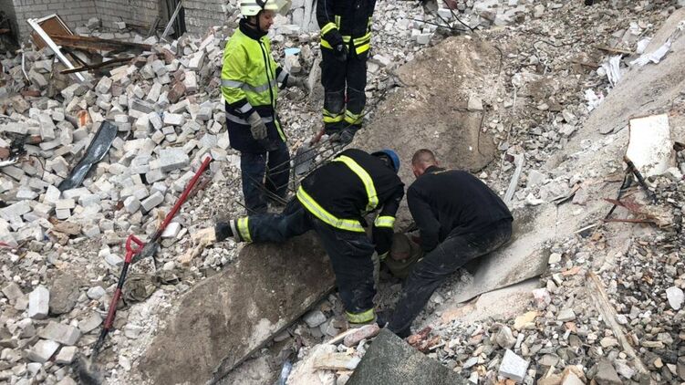 Спасатели работают на месте ракетного удара по жилому дому в Часове Яре