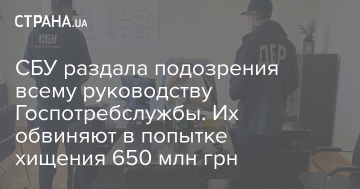 СБУ раздала подозрения всему руководству Госпотребслужбы. Их обвиняют в попытке хищения 650 млн грн