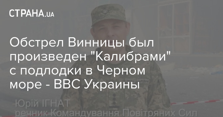Обстрел Винницы был произведен "Калибрами" с подлодки в Черном море - ВВС Украины