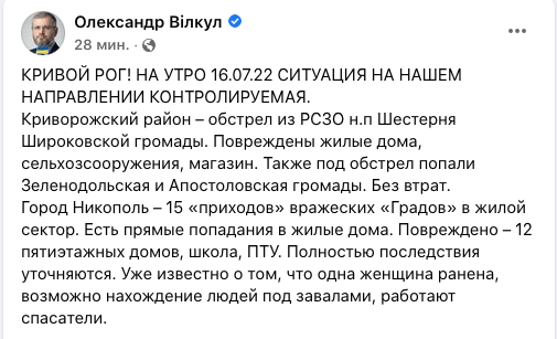 Об этом сообщил глава Криворожской военной администрации Александр Вилкул.