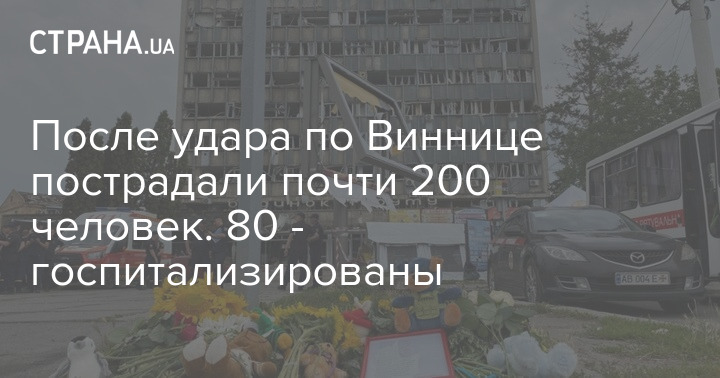 Мэр Винницы Сергей Моргунов в комментарии "Стране" сообщил, что на данный момент 197 человек обратились за медицинской помощью после вчерашнего ракетного удара по Виннице.