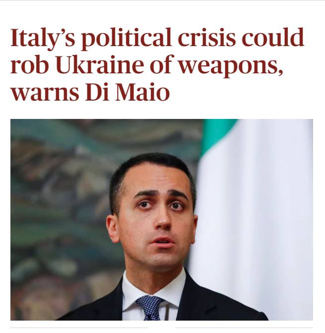12.29 Глава МИД Италии Луиджи Ди Майо предупредил, что отставка премьера Марио Драги грозит лишить Украину военной поддержки Италии. Об этом он сказал в телефонном интервью изданию Politico.