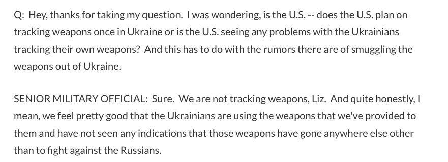 "Не отслеживать и не знать, куда идет это оружие, я думаю, это разные вещи", - заявил он.