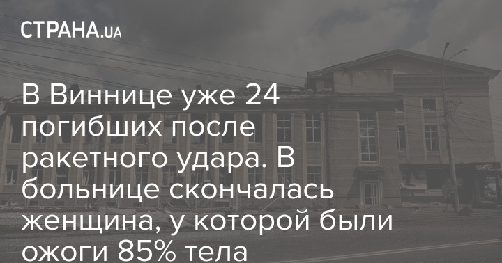 В Виннице скончалась еще одна жертва позавчерашнего ракетного удара. Женщина получила ожоги 85% поверхности тела и умерла в больнице.