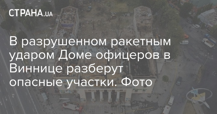 Дом офицеров в Виннице, пострадавший в результате ракетного удара, полностью сносить не будут, но уберут некоторые аварийные конструкции.