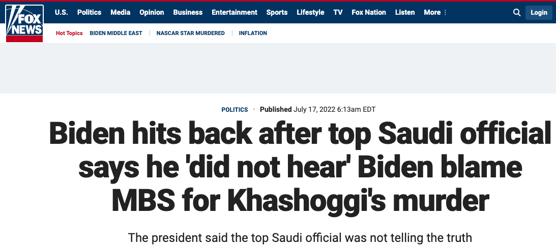 Байден заявил, что при встрече обвинил саудовского принца в убийстве журналиста Хашогги. Эр-Рияд отрицает