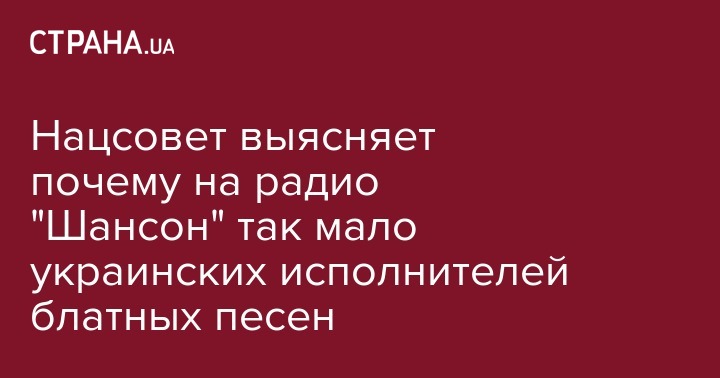Мониторинг программного наполнения телерадиокомпании "Шансон", который был проведен 27 декабря 2015 года в Харькове на частоте 103,5 МГц показал, что часть музыкальных произведений украинских авторов и исполнителей составляла всего 27,7%, что, по словам члена Нацсовета Сергея Костинского, свидетельствует о систематичности нарушений вещателем отечественного законодательства и условий собственной лицензии, говорится в сообщении.