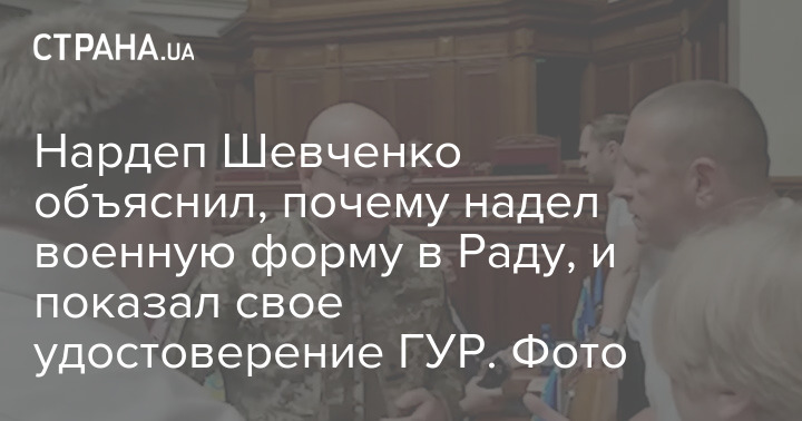Народный депутат Евгений Шевченко прокомментировал "Стране" своё появление в Раде в военной форме, которое  спровоцировало скандал. Депутаты "ЕС" потребовали, чтобы он переоделся, после чего Шевченко вышел из зала парламента и не вернулся.
