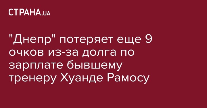 "Днепр" потеряет еще 9 очков из-за долга по зарплате бывшему тренеру Хуанде Рамосу