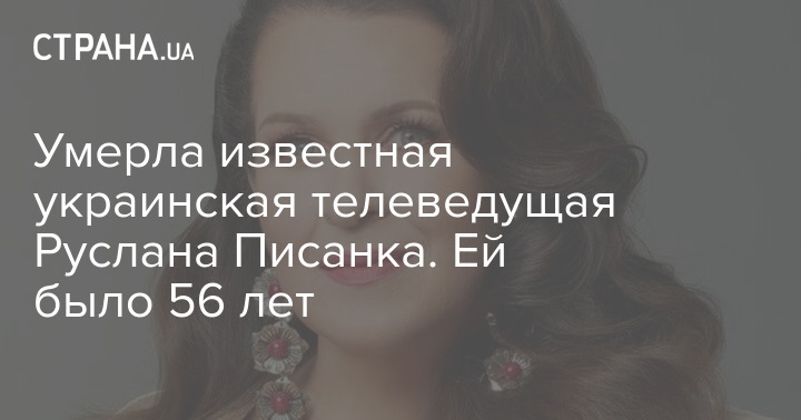 Умерла известная украинская телеведущая Руслана Писанка. Ей было 56 лет