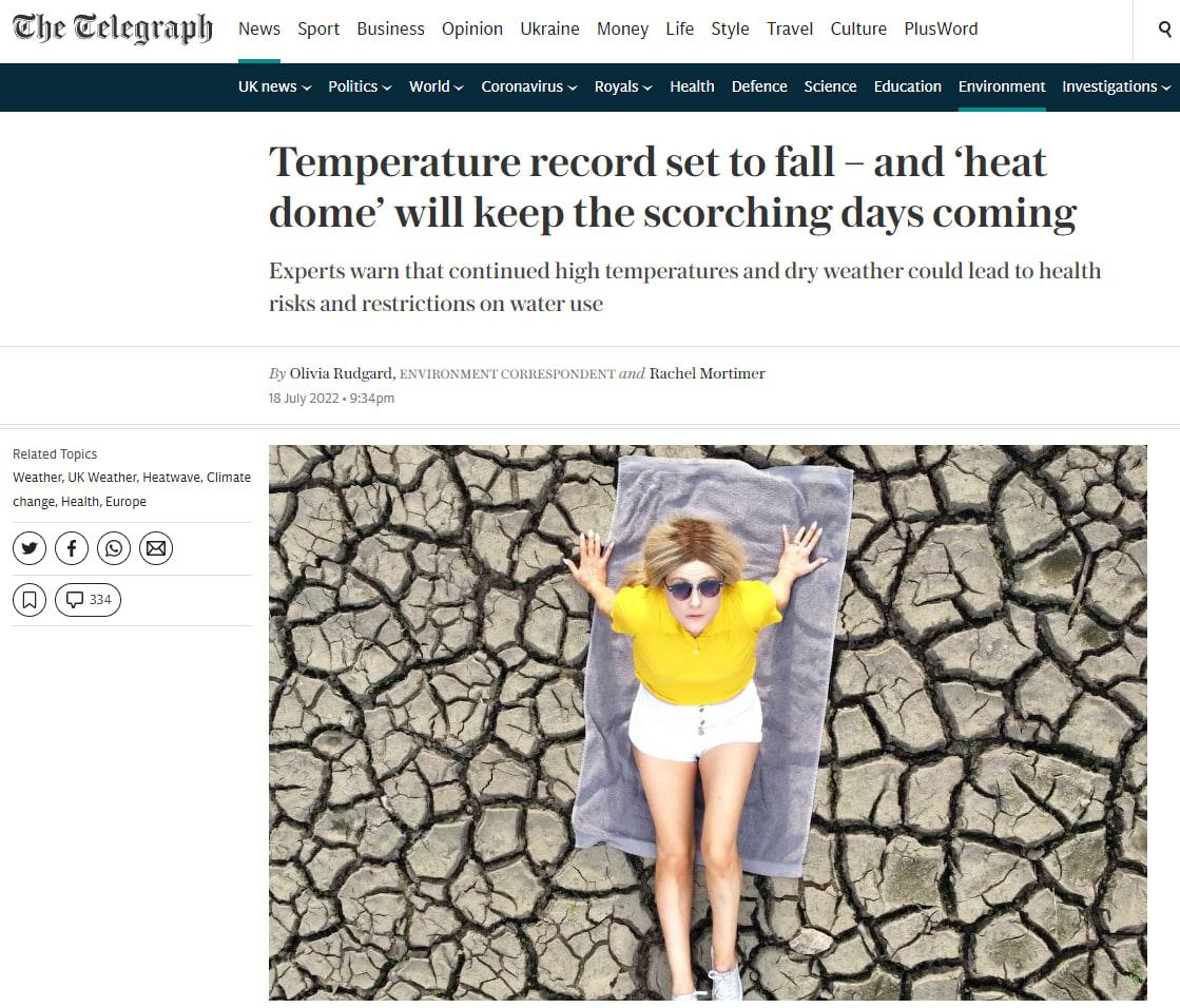 Западная пресса обсуждает аномальную жару в Британии, где сегодня были установлены сразу два подряд абсолютных температурных рекорда.