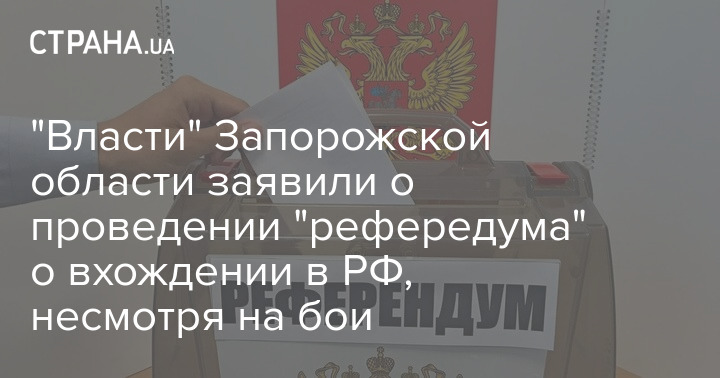 "Референдум о вхождении Запорожской области в состав РФ" будет проведен, несмотря на боевые действия. Об этом заявил представитель оккупационных "властей" Запорожской области Владимир Рогов.
