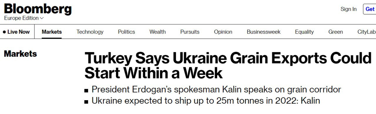 Также в Стамбуле уже заработал совместный координационный центр Украины, РФ, Турции и ООН по зерну.
