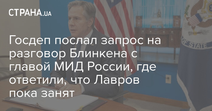 Госдеп послал запрос на разговор Блинкена с главой МИД России, где ответили, что Лавров пока занят