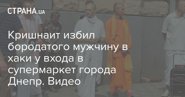 Кришнаит избил бородатого мужчину в хаки у входа в супермаркет города Днепр. Видео