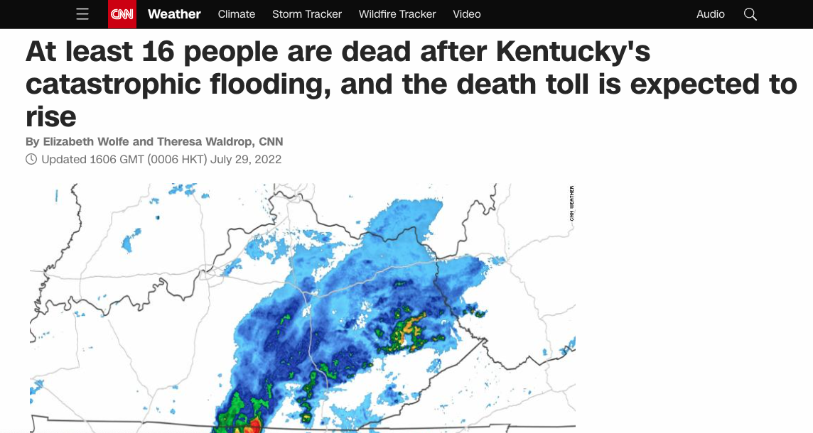 В штате Кентукки на юго-востоке США по меньшей мере 16 человек погибли в результате катастрофического наводнения. Введен режим чрезвычайной ситуации.