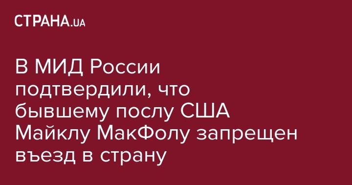 Ранее "Страна" сообщала, что Майкл МакФол сообщил, что ему запрещен въезд в Россию и он находится в "санкционных списках Кремля".
