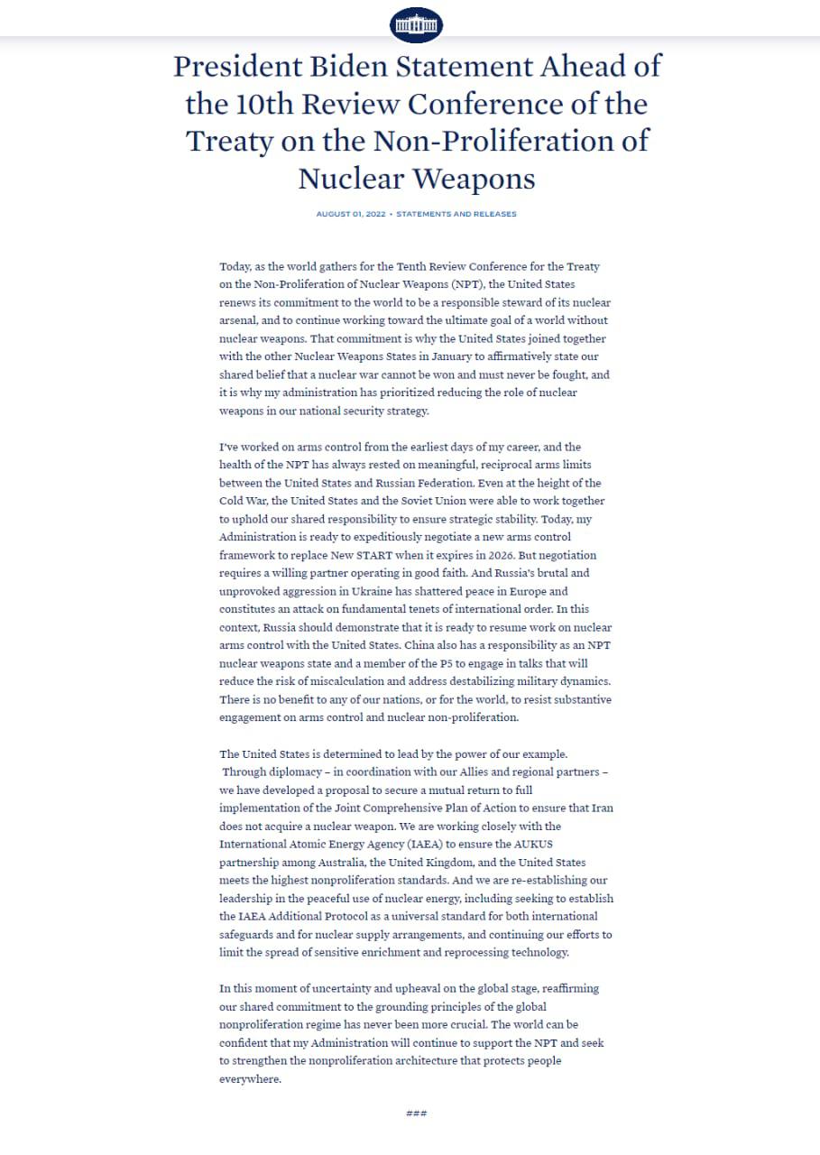 Об этом говорится в заявлении Байдена, опубликованном на сайте Белого дома.