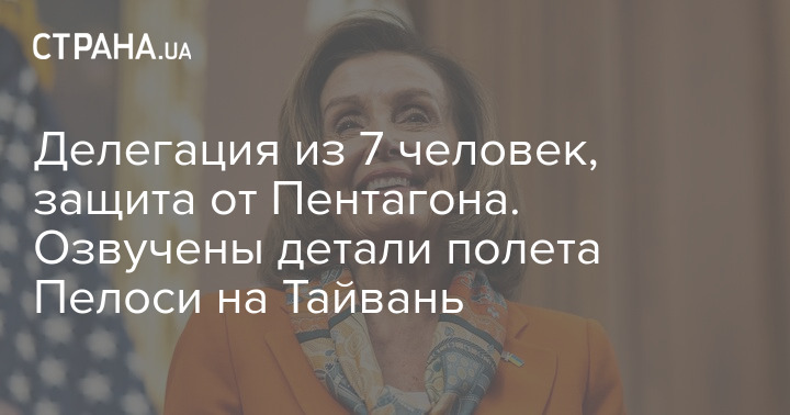 Спикер Палаты представителей Конгресса США Нэнси Пелоси Пелоси прибудет на Тайвань в составе делегации из семи человек. Отметим, что ранее тайваньские СМИ сообщали о делегации из 40 человек.