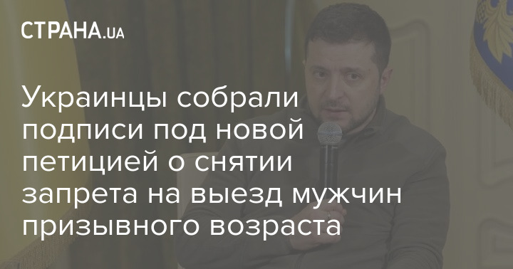 Петиция о снятии запрета на выезд мужчин призывного возраста (18-60 лет) за пределы Украины набрала необходимые 25 тысяч голосов за 37 дней.
