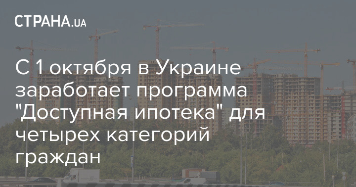 С 1 октября в Украине заработает программа "Доступная ипотека" для четырех категорий граждан