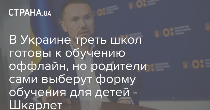 В Украине к обучению в режиме оффлайн готовы 30% школ, но форму обучения будут выбирать сами родители, учитывая вопросы безопасности. Об этом заявил министр образования и науки Сергей Шкарлет в эфире телемарафона.