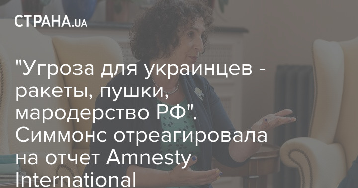 "Единственное, что несет угрозу мирному населению Украины - российские ракеты, пушки, мародерство российских войск. Если бы Россия прекратила вторжение в Украину, опасности бы не было", - прокомментировала она, по всей видимости, исследование Amnesty International о методах ведения боевых действий украинскими военными.